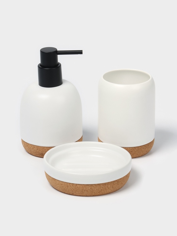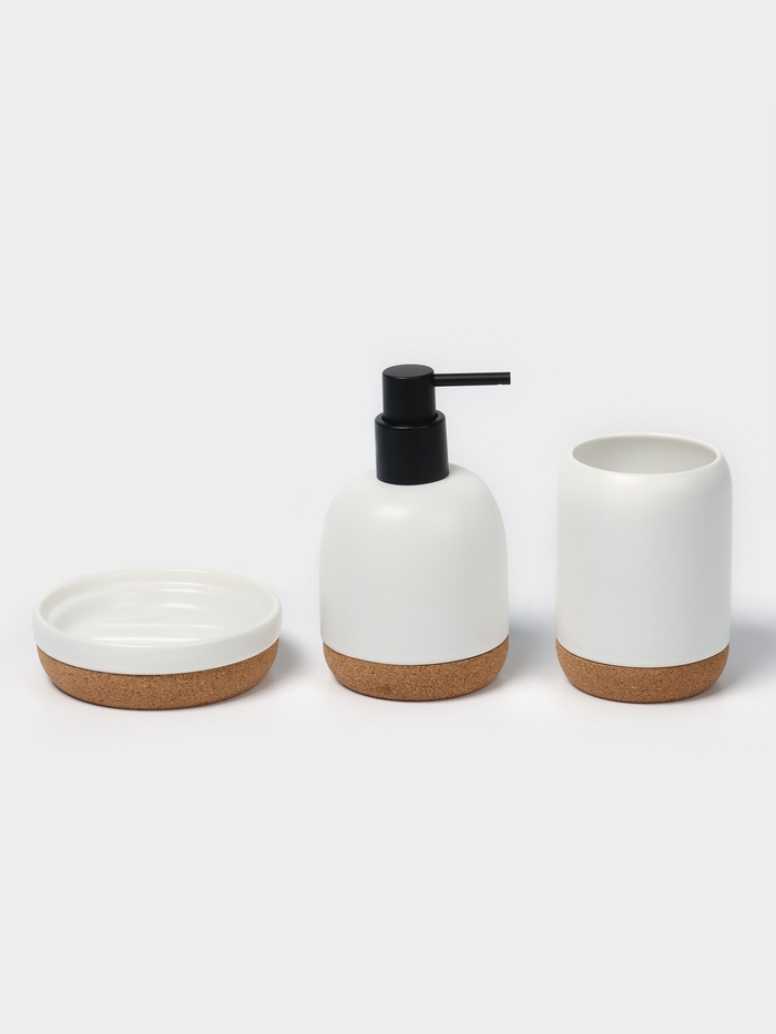Набор для ванной "Пробка" 3 предмета (дозатор для мыла, стакан, мыльница)