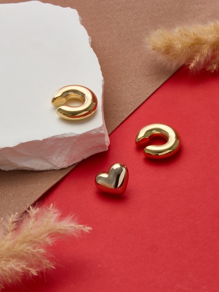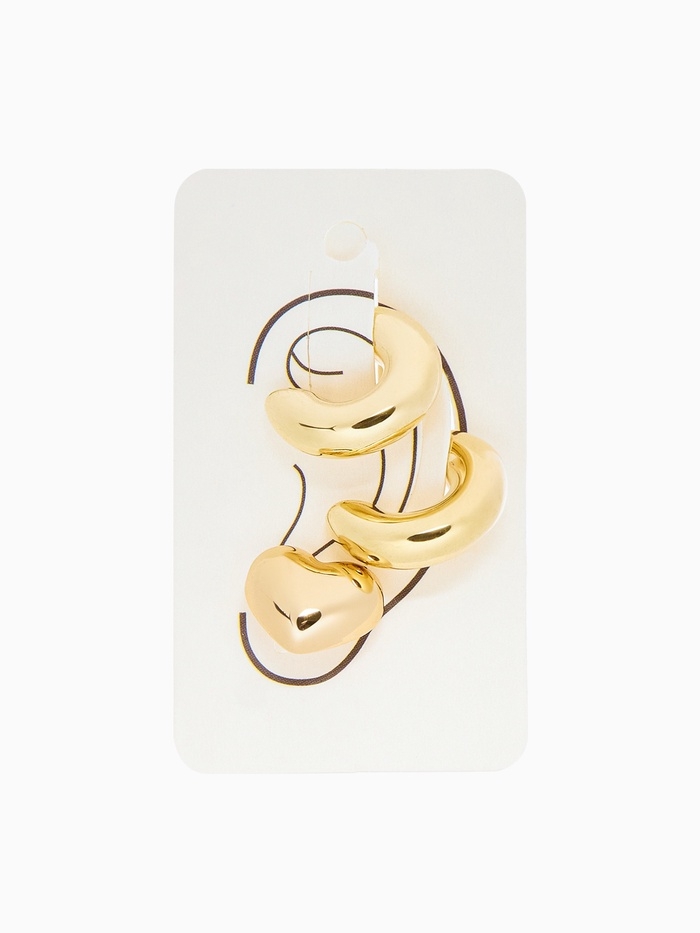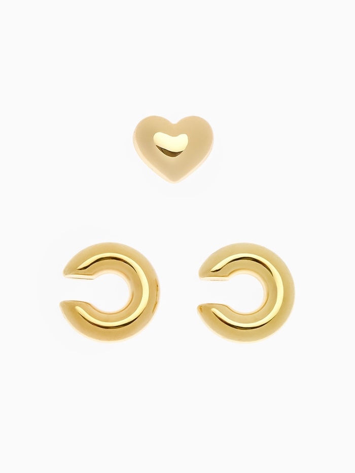 Набор серьги и каффы 3 шт. «Бублик» сердце, цвет золото