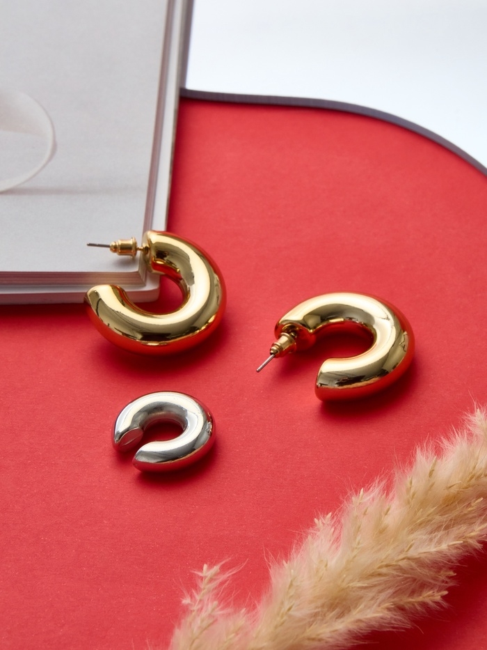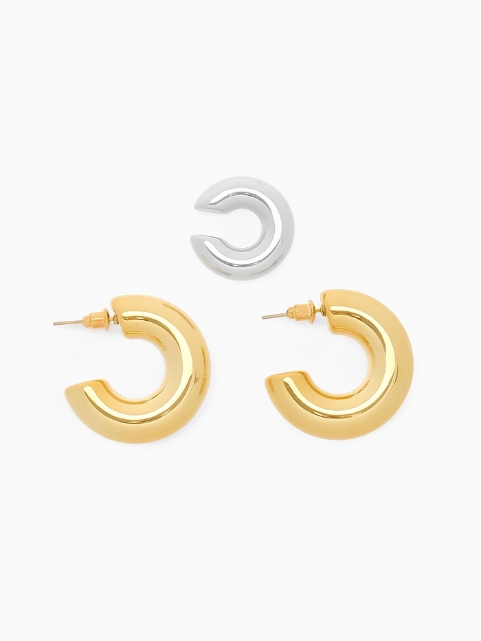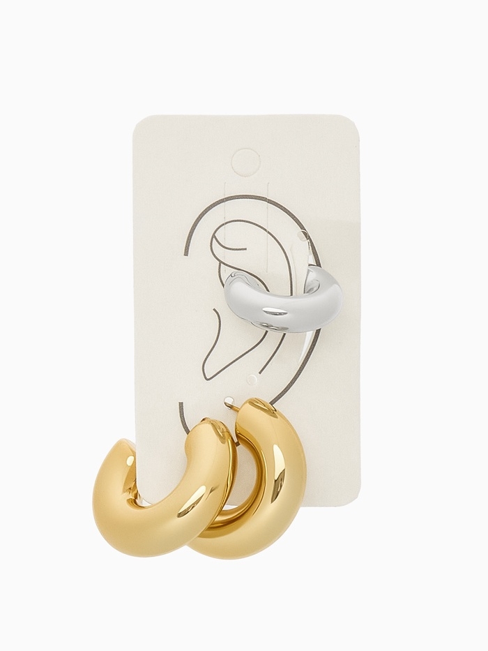 Набор серьги и каффы 3 шт. «Бублик» кольца, цвет серебро в золоте