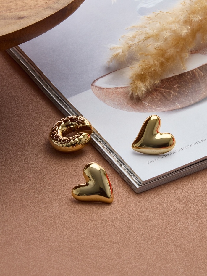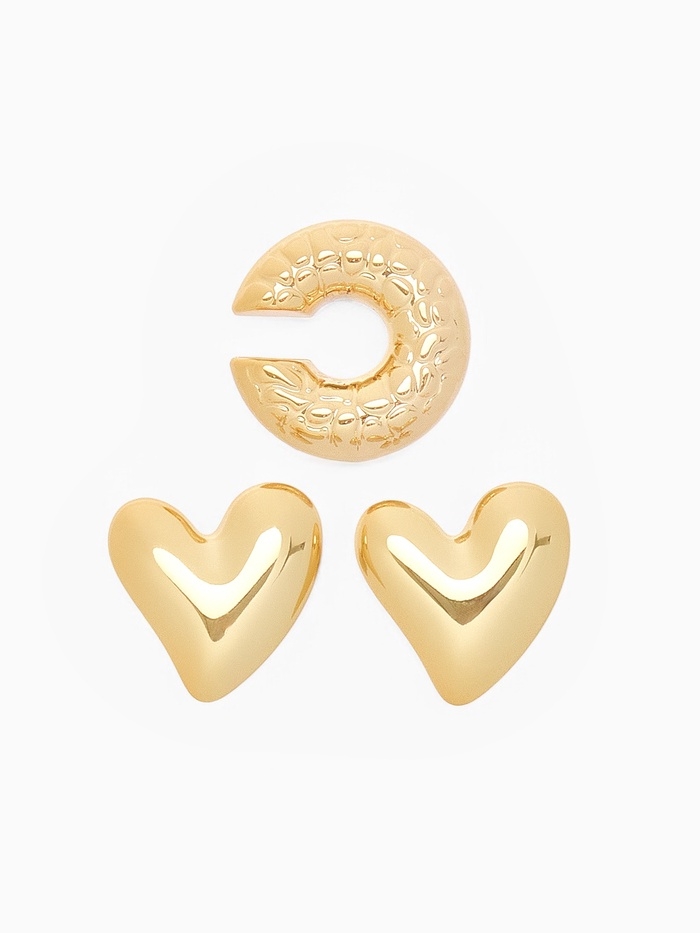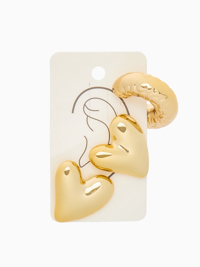 Набор серьги и каффы 3 шт. «Сердечко» бублик, цвет золото