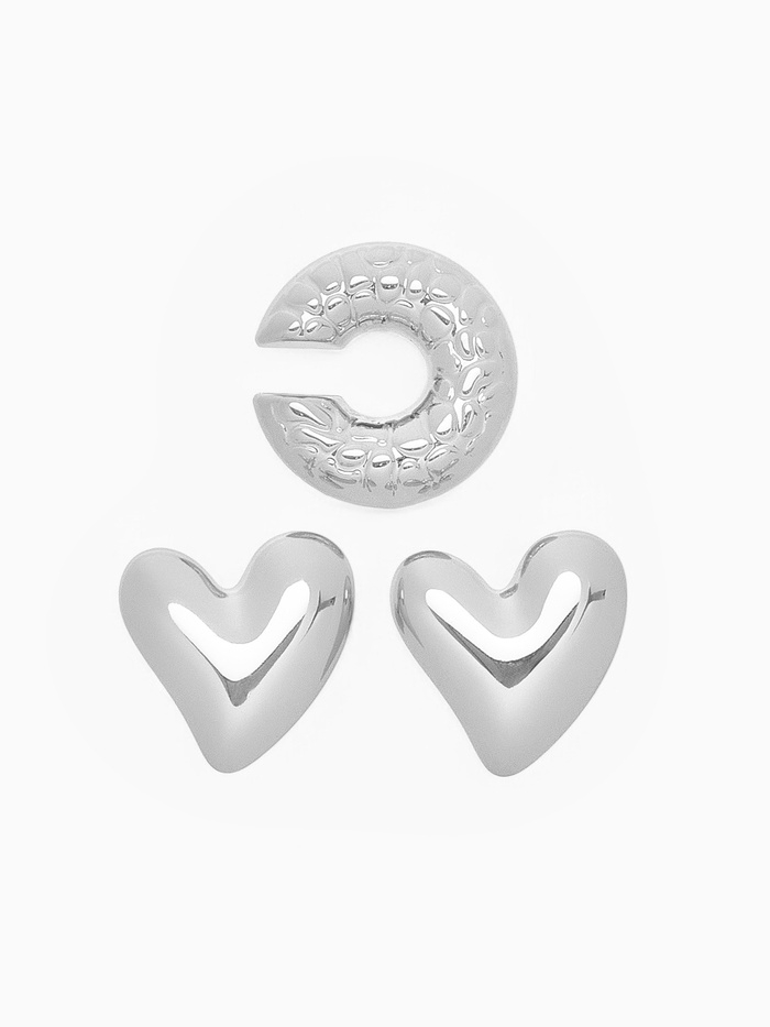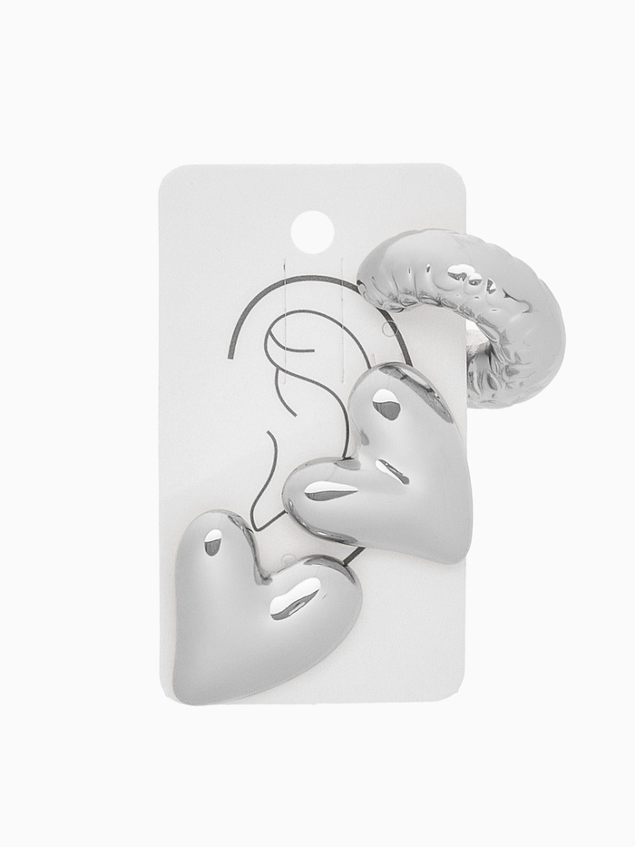 Набор серьги и каффы 3 шт. «Сердечко» бублик, цвет серебро