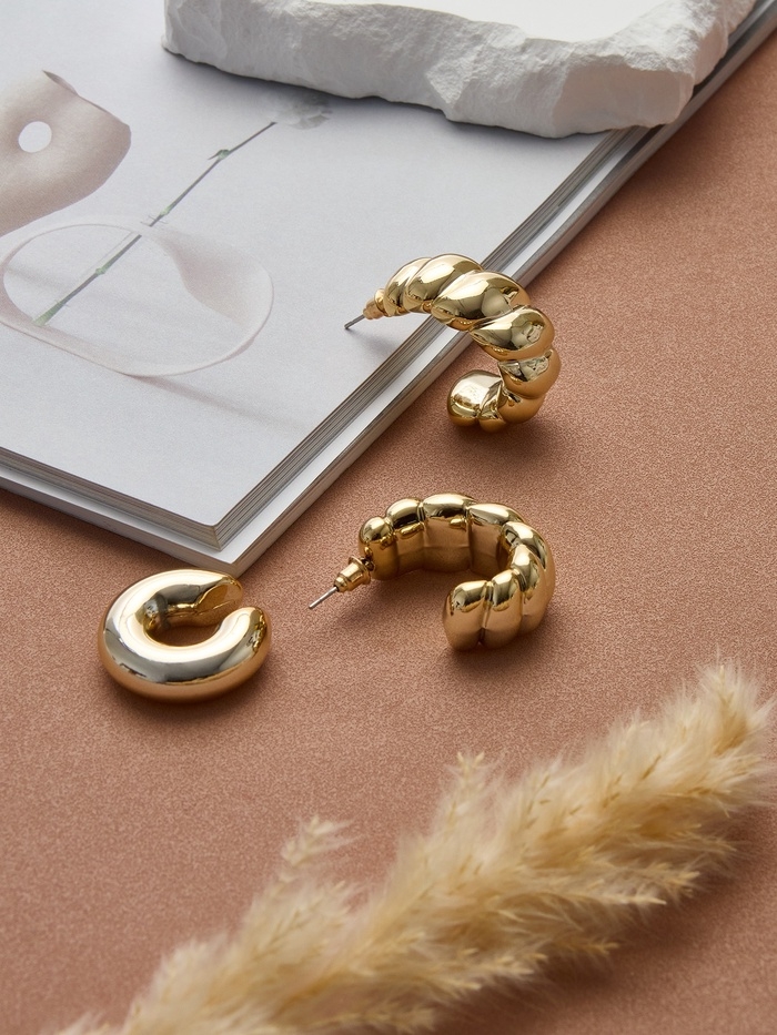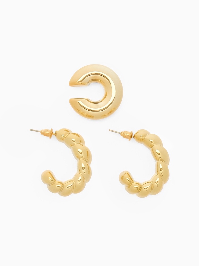 Набор серьги и каффы 3 шт. «Косичка» бублик, цвет золото