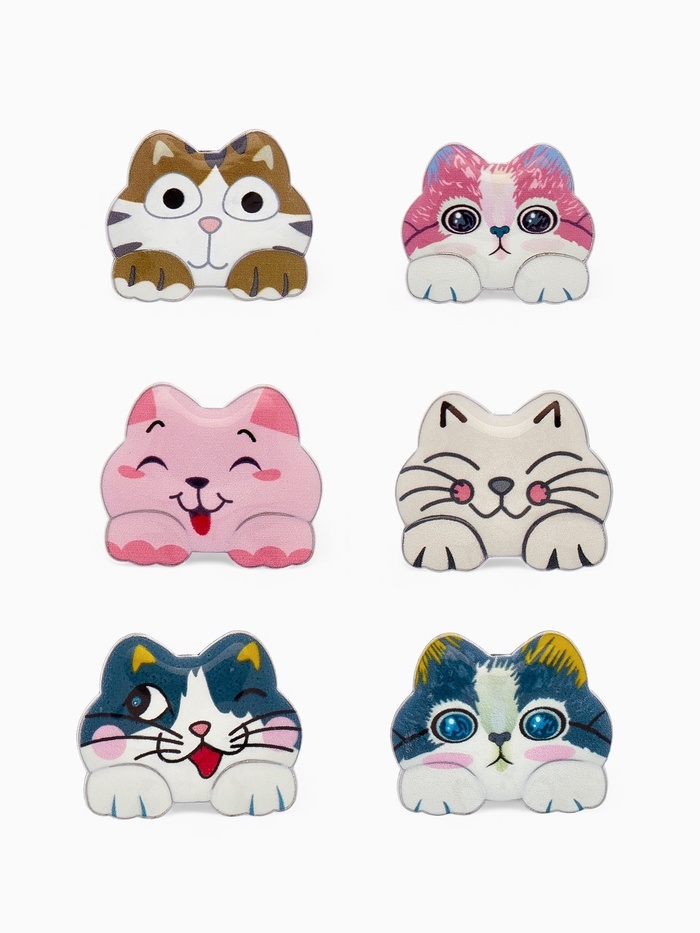 Брошь «Котёнок» озорной, цвет МИКС в серебре (неделимая фасовка 12 шт., цена за шт.)