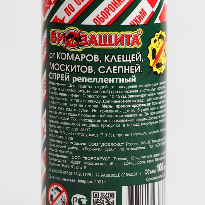 Спрей репеллентный от комаров, клещей, москитов, слепней, "Биозащита", 100 мл