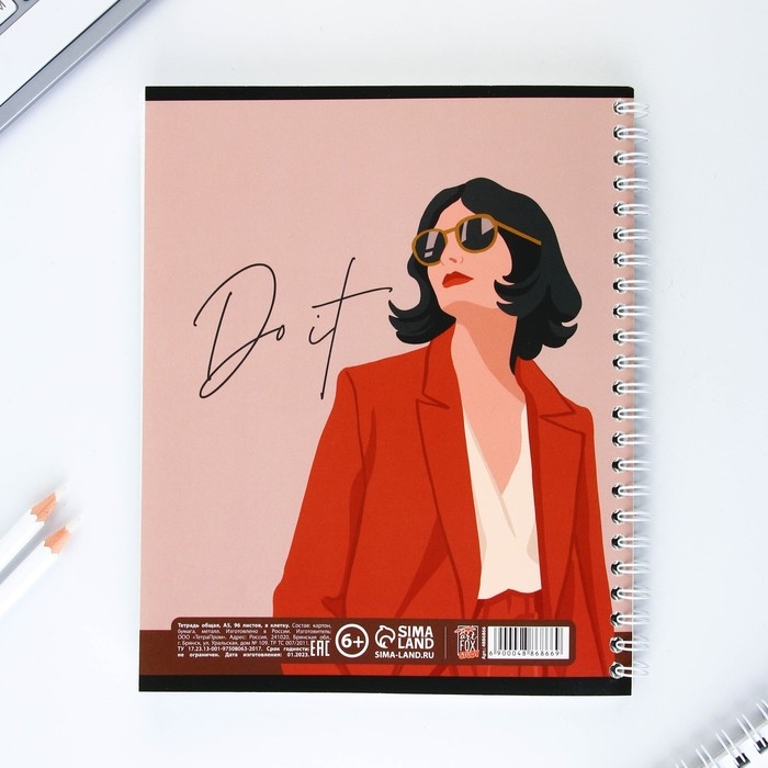 Тетрадь в клетку, 96 листов А5 на спирали, Lady, обложка мелованный картон 215 г белизна 96%