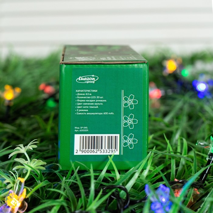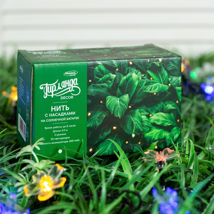 Гирлянда «Нить» 4.5 м с насадками «Цветы», IP44, тёмная нить, 30 LED, свечение мульти, 2 режима, солнечная батарея