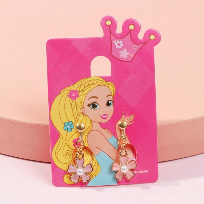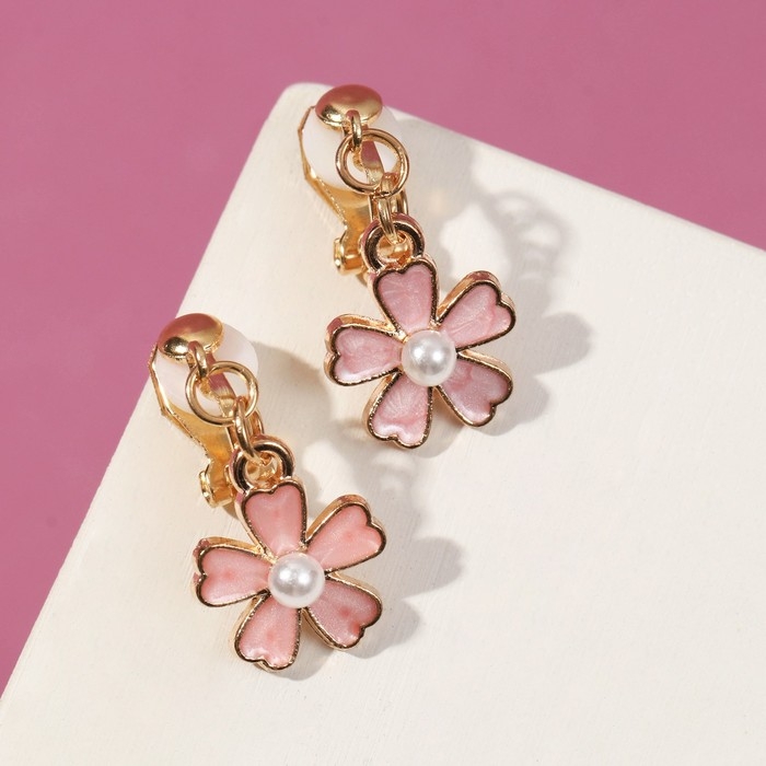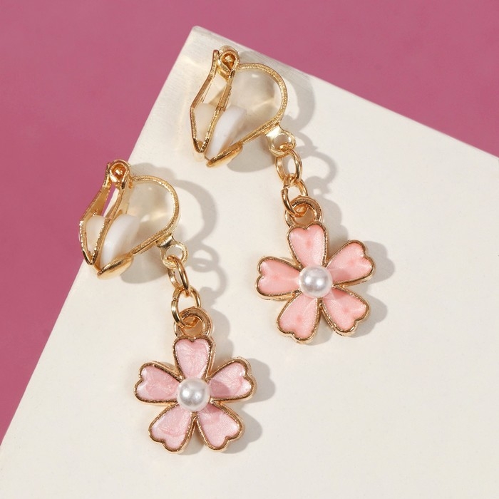 Серьги-клипсы детские «Выбражулька» цветочек с жемчужиной, цвет бело-персиковый в золоте