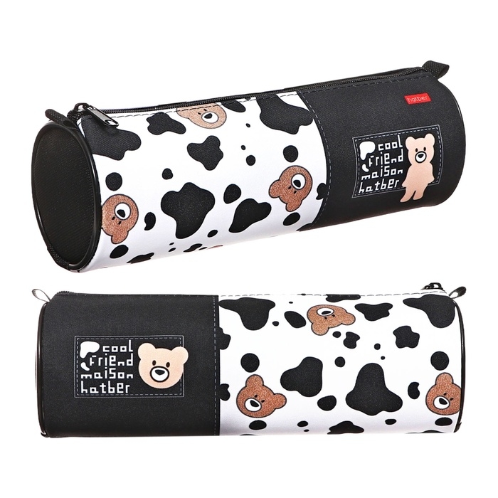 Пенал-тубус мягкий 70 х 210 мм, Hatber "В мире мишек" чёрный/белый NPt_60124