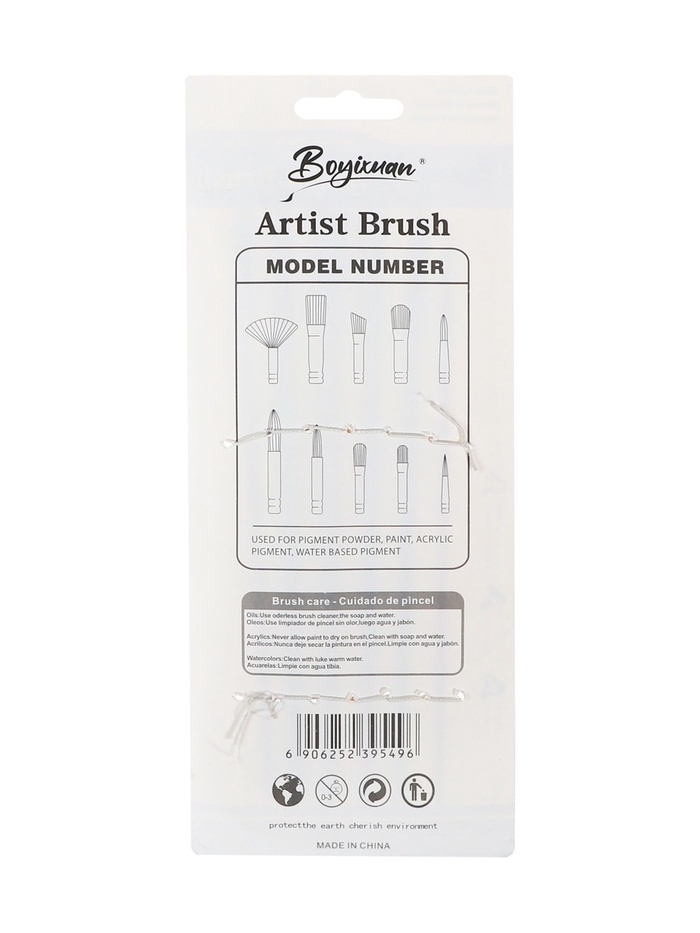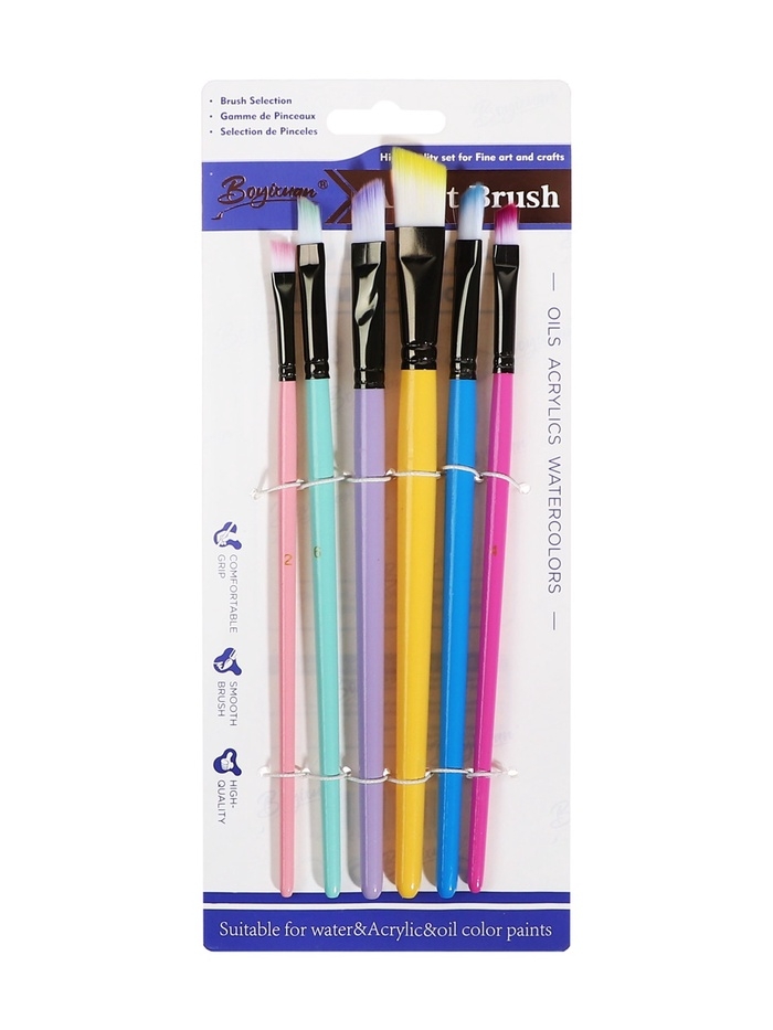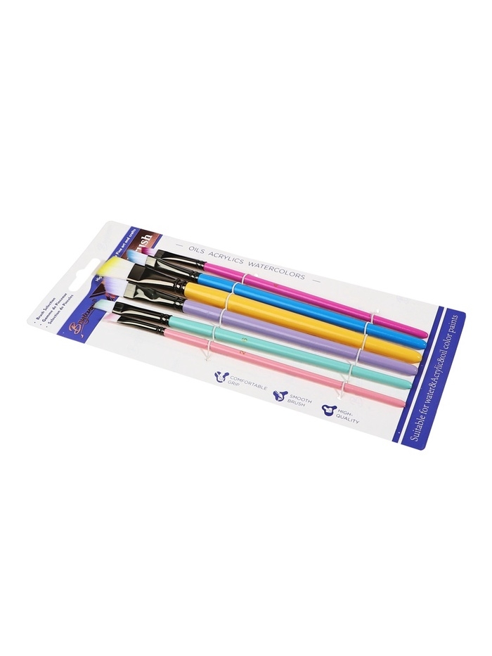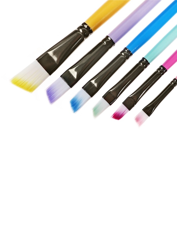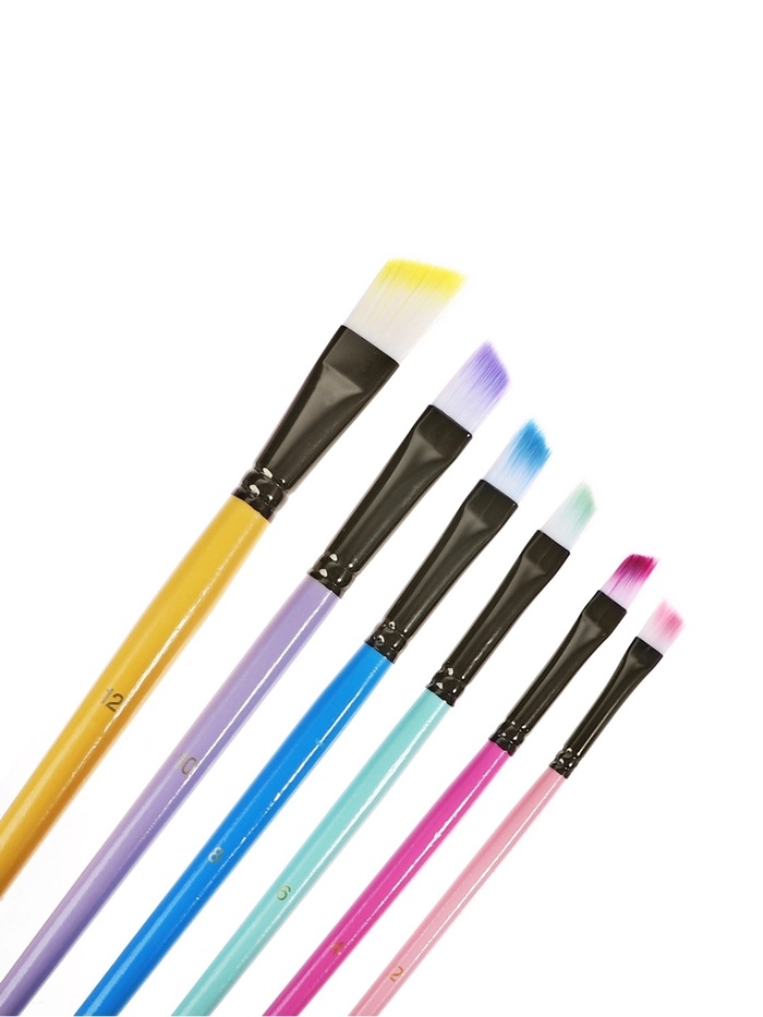 Набор кистей синтетика плоские 6 штук скошенные, с цветными ручками пастель (№2,4,6,8,10,12) 10843