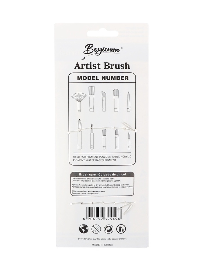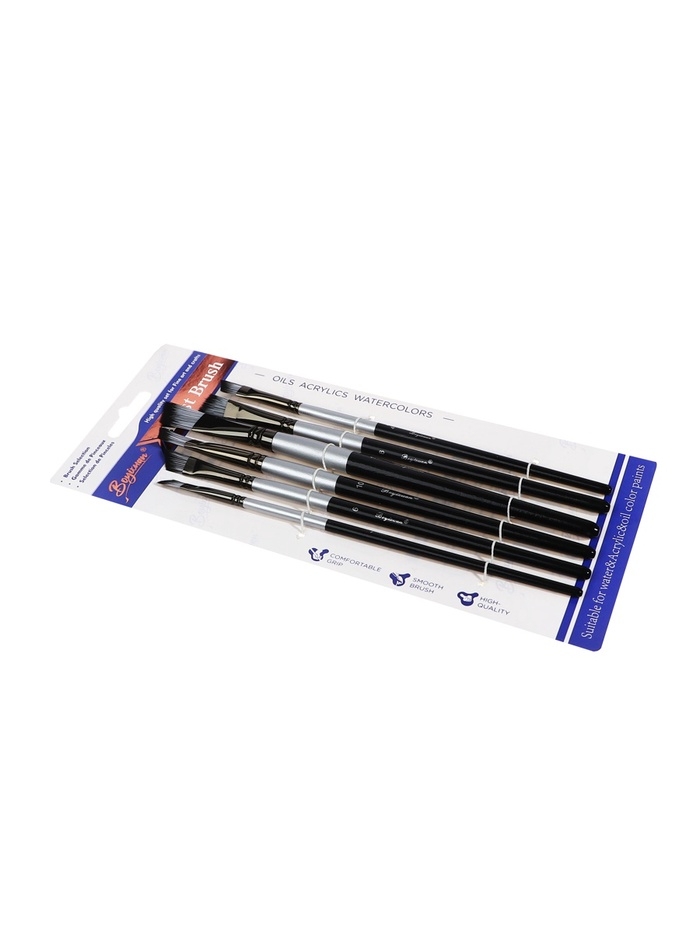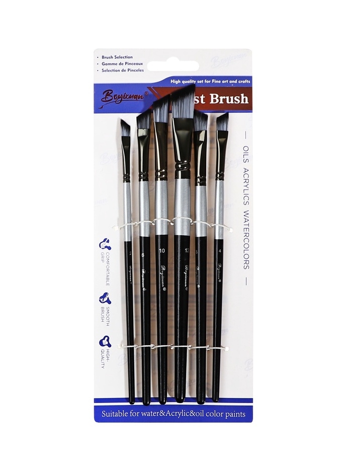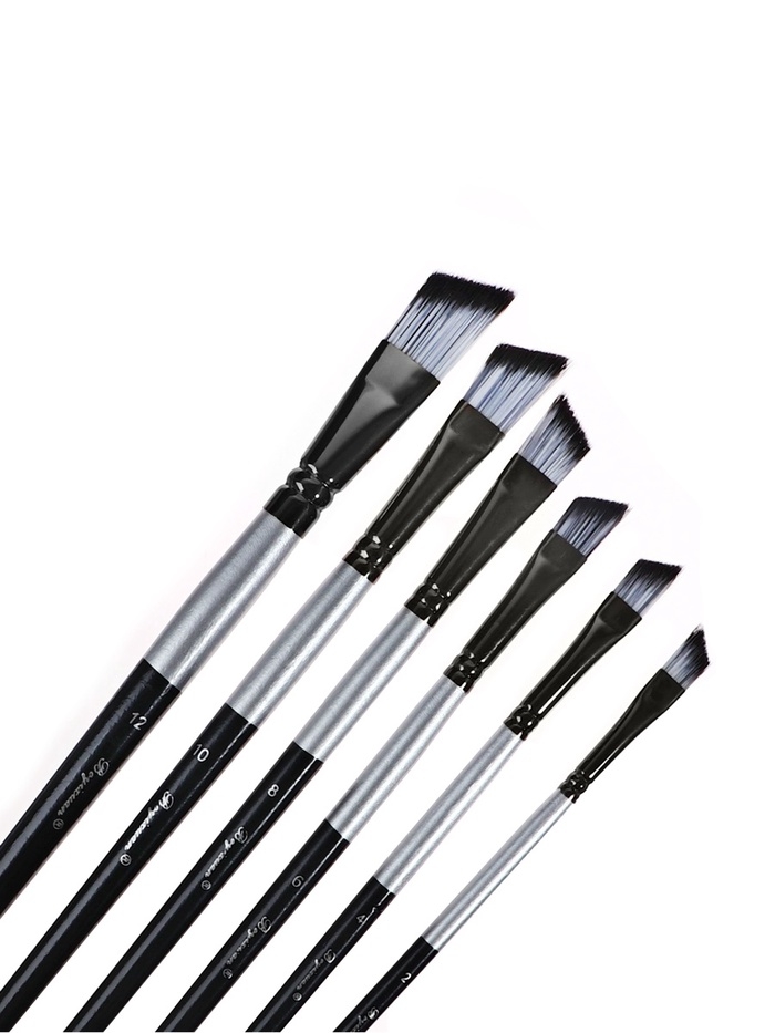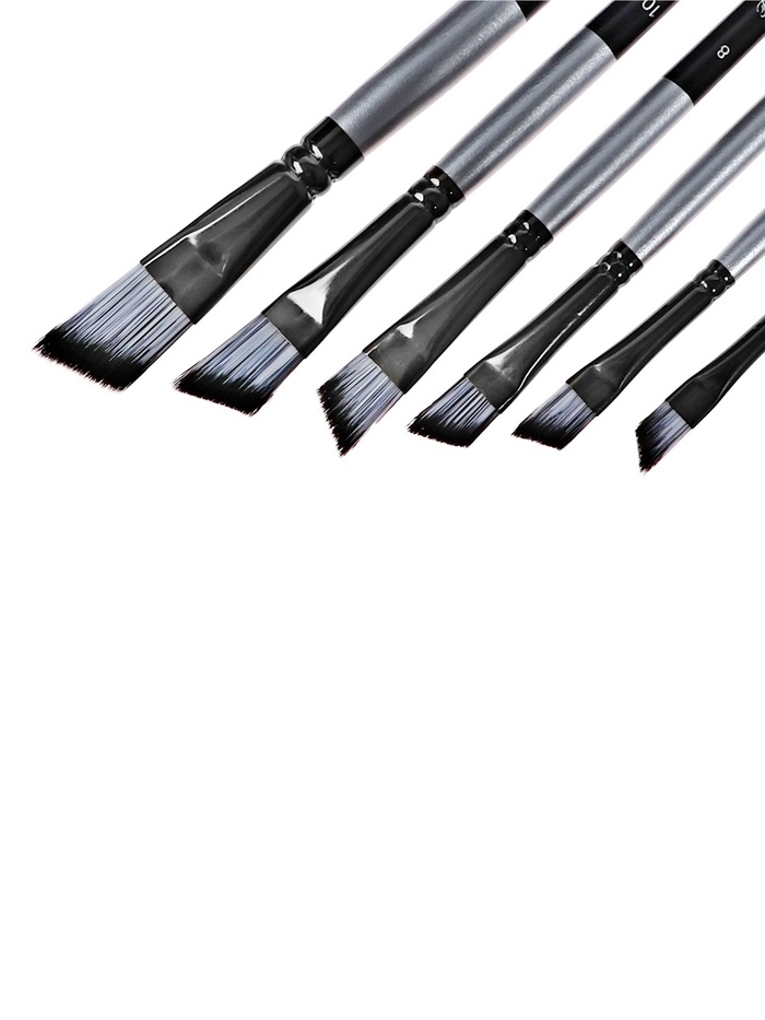 Набор кистей синтетика плоские 6 штук скошенные, черно-серые (№2,4,6,8,10,12)