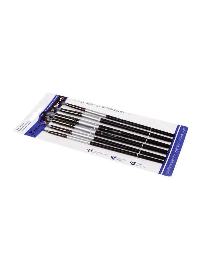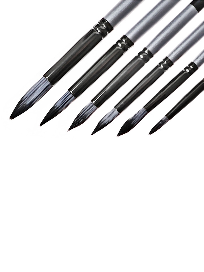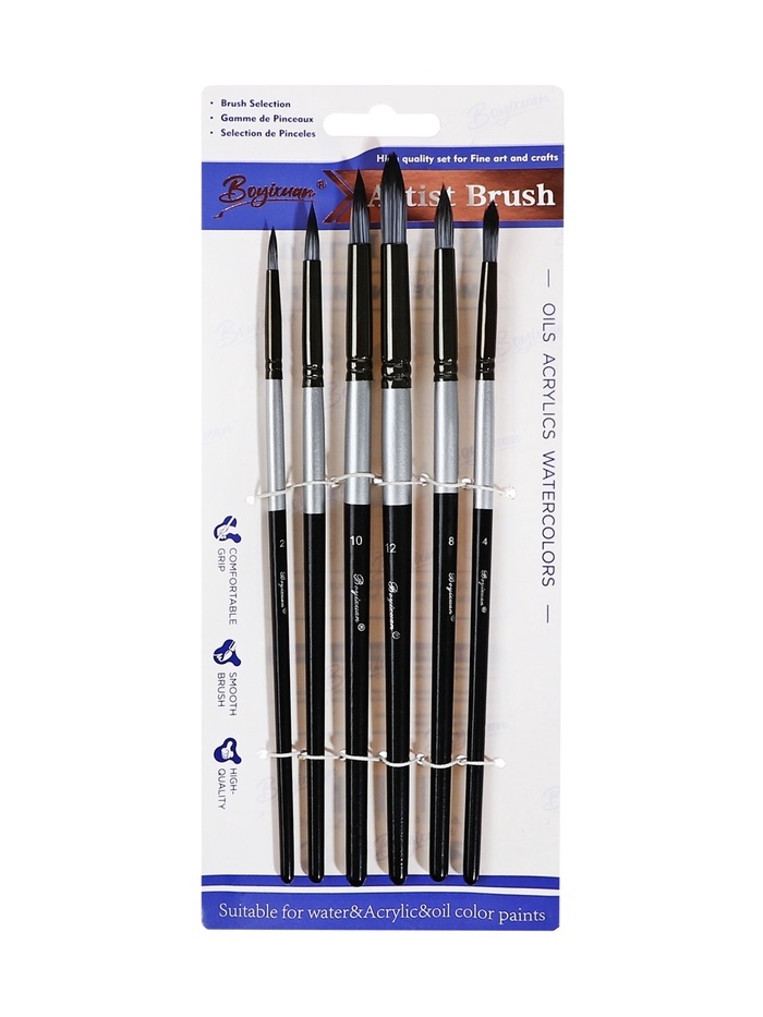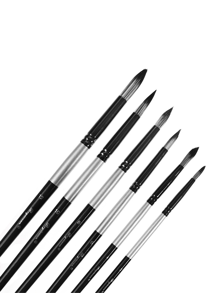Набор кистей синтетика круглые 6 штук черно-серые (№2,4,6,8,10,12)