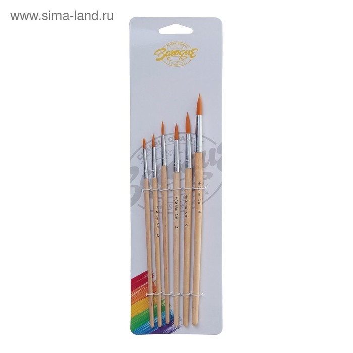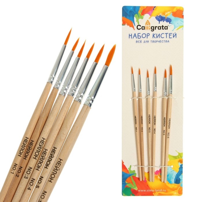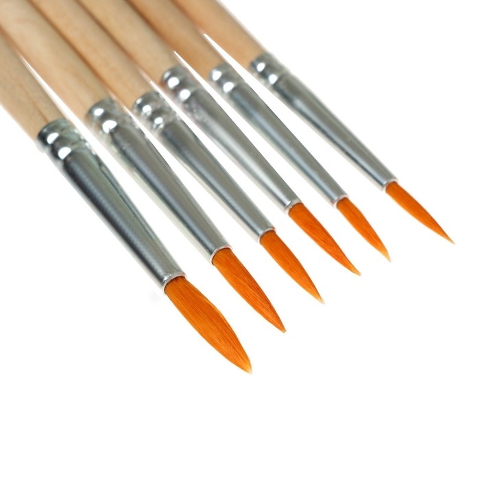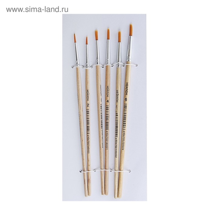 Набор кистей нейлон 6 штук: №1, 2, 3, 4, 5, 6, круглые