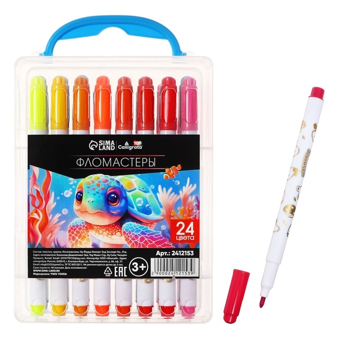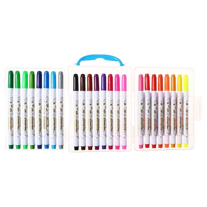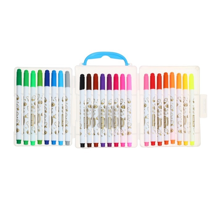Фломастеры 24 цвета "Мышка", в пластиковом пенале с ручкой, вентилируемый колпачок