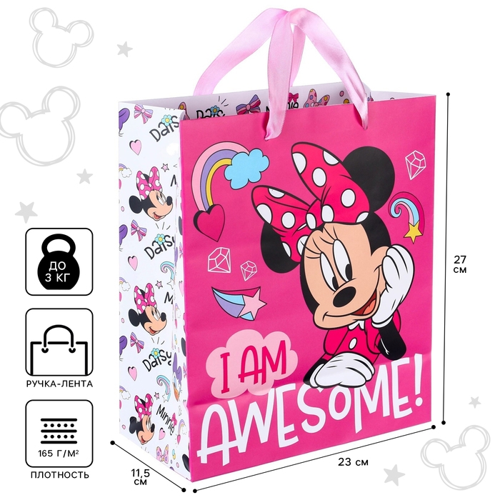 Пакет подарочный, 23х27х11.5 см, упаковка, Минни Маус