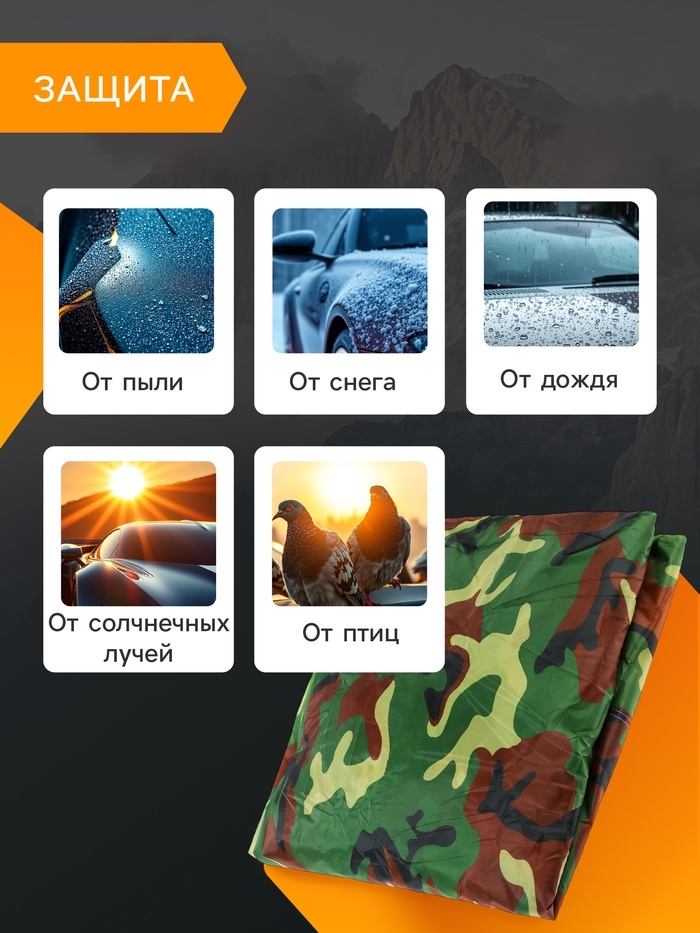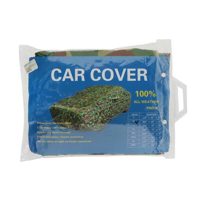 Тент автомобильный, водонепроницаемый, полиэстер, камуфляж хаки, размер M 457*165*119 см