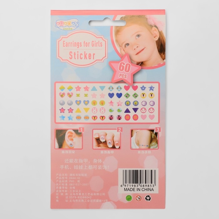 Серьги пластик «Наклейки» улыбка, фигуры, цветные