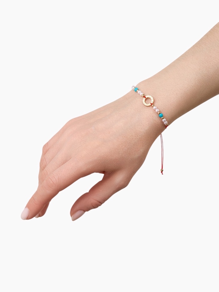 Браслет-оберег «Красная нить» женский, защита, кольцо мини, голубо-белый в золоте, d=6