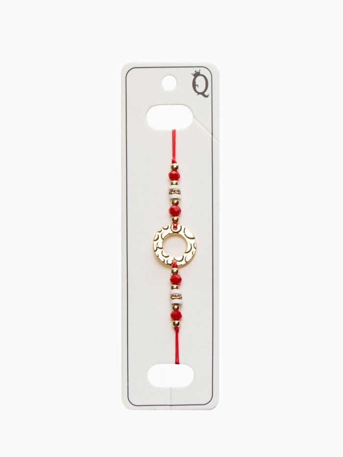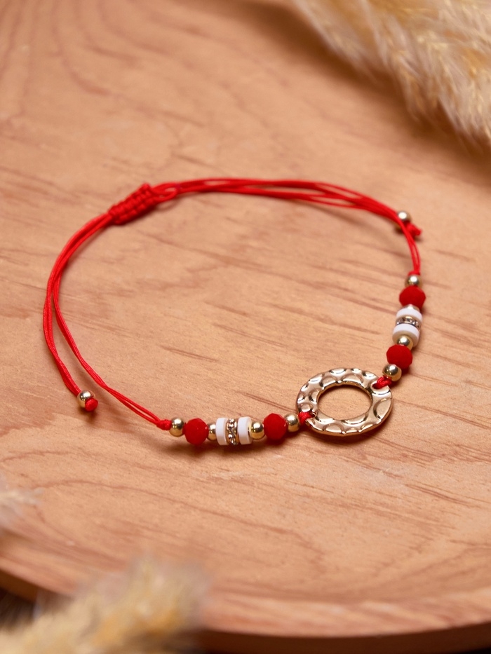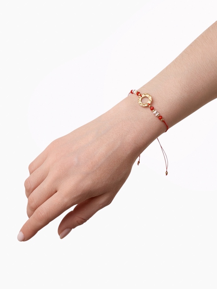 Браслет-оберег «Красная нить» женский, защита, кольцо, бело-красный в золоте, d=6