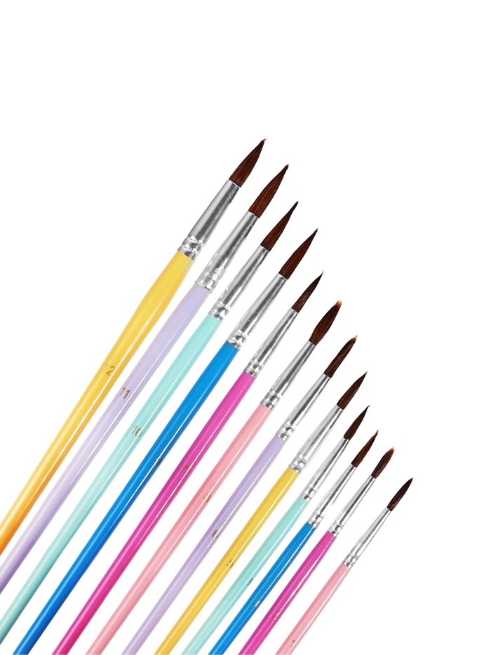 Набор кистей пони круглые 12 штук с цветными ручками пастель(№1,2,3,4,5,6,7,8,9,10,11,12)