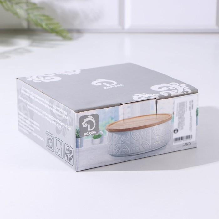 Банка для сыпучих продуктов BellaTenero «Листья», 500 мл, 13×9.5 см, с бамбуковой крышкой, фарфор, белая