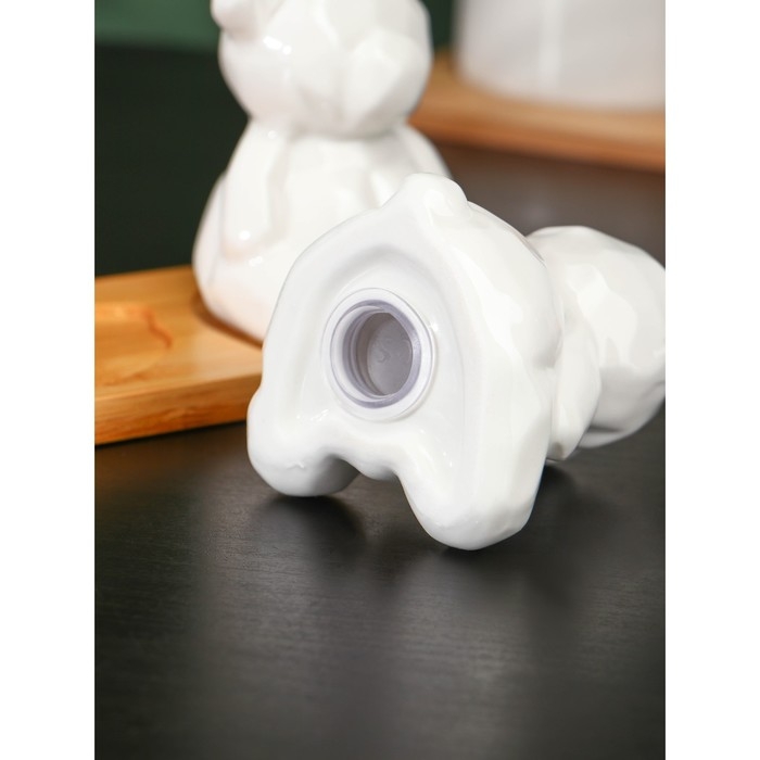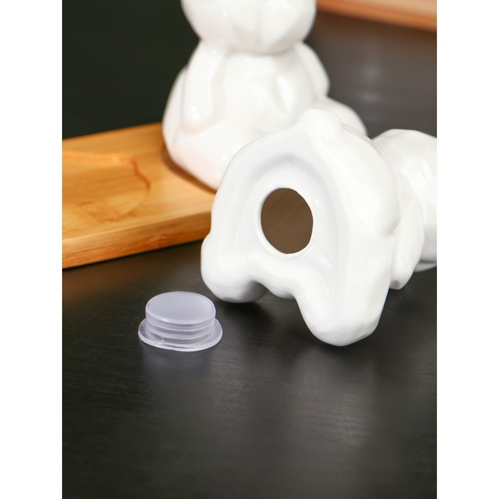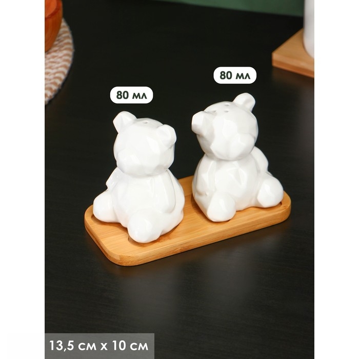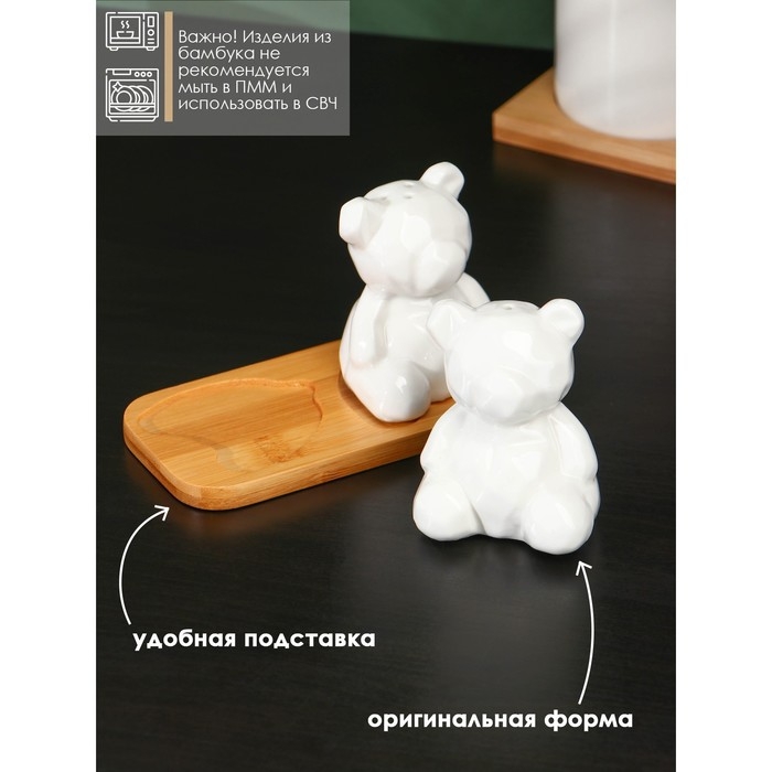 Набор фарфоровый для специй на бамбуковой подставке BellaTenero «Медведи», 2 предмета: солонка 80 мл, перечница 80 мл, цвет белый