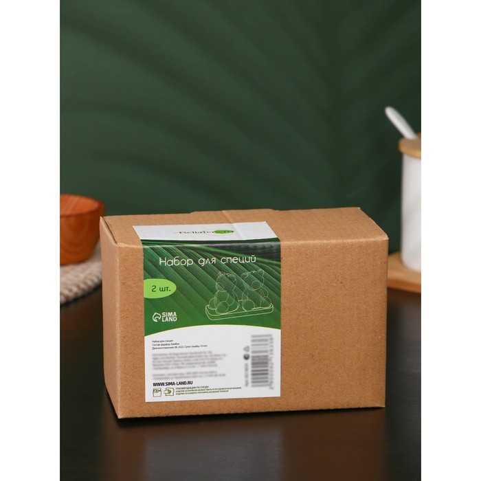 Набор фарфоровый для специй BellaTenero, 5 предметов: солонка 50 мл, перечница 50 мл, сахарница с ложкой 200 мл, подставка-держатель, цвет белый