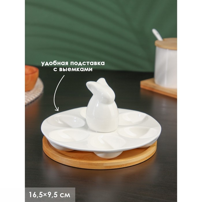 Подставка фарфоровая для яиц 6 ячеек BellaTenero «Зайка», 16,5×9,5 см, цвет белый