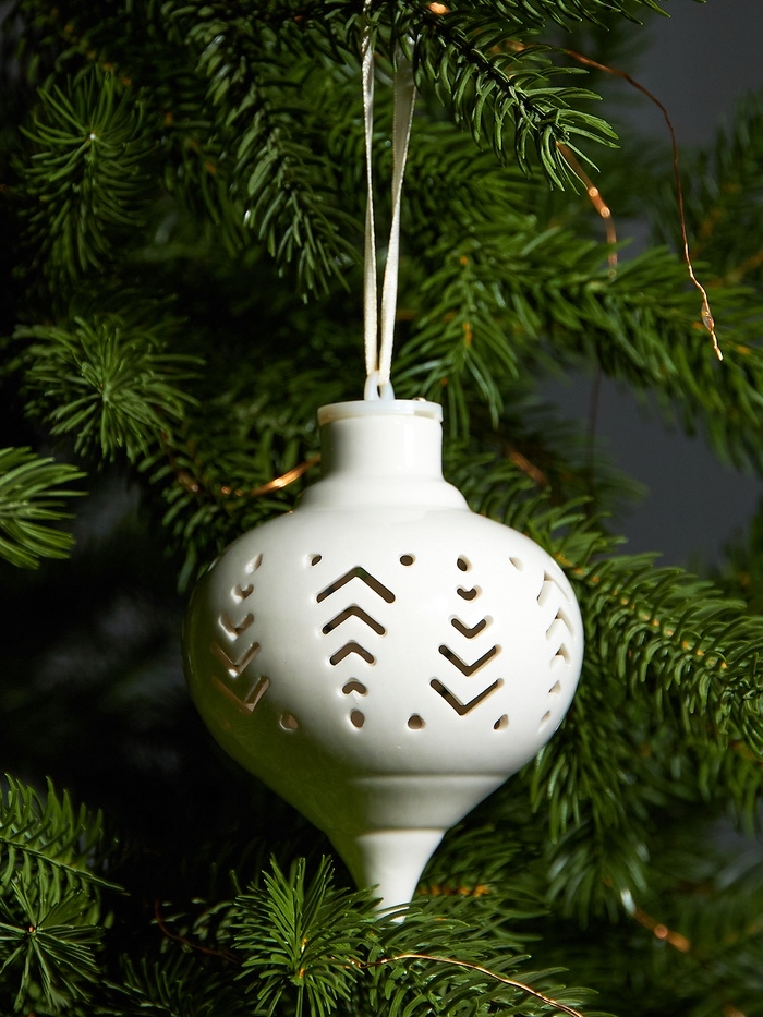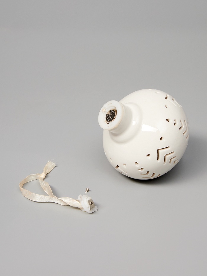 Елочный шар "Орнамент" 10.7х8.5х8.5, 1 LED, LR44x3(в компл.), Т/БЕЛЫЙ