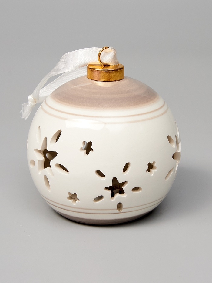 Елочный шар "Звезды беж" 10х8.8х8.8, 1 LED, LR44x3(в компл.), Т/БЕЛЫЙ