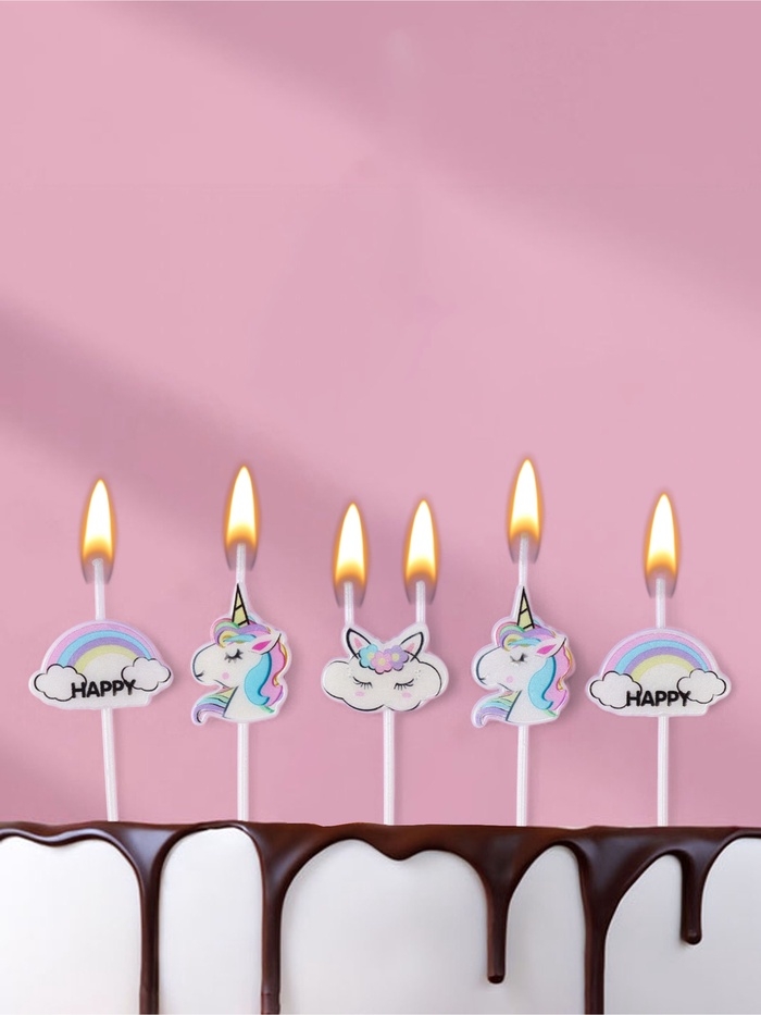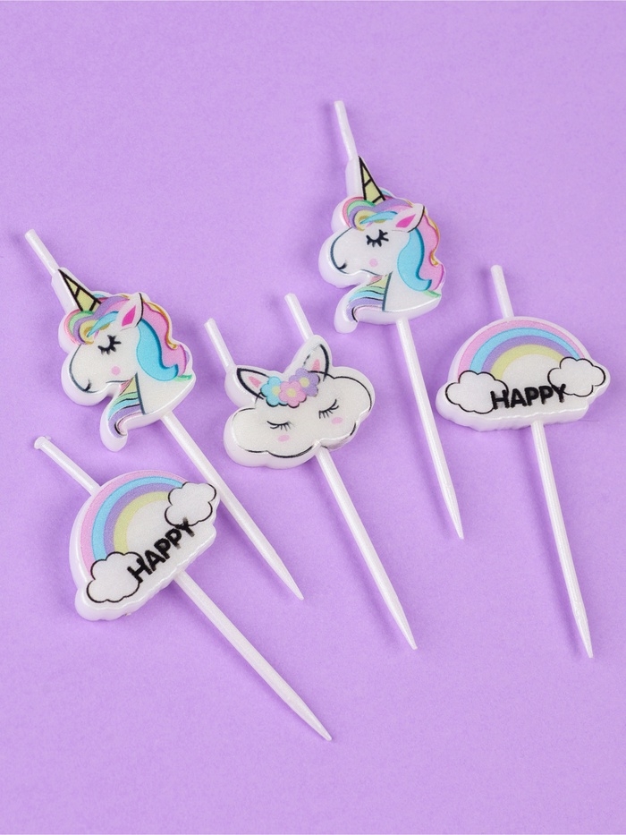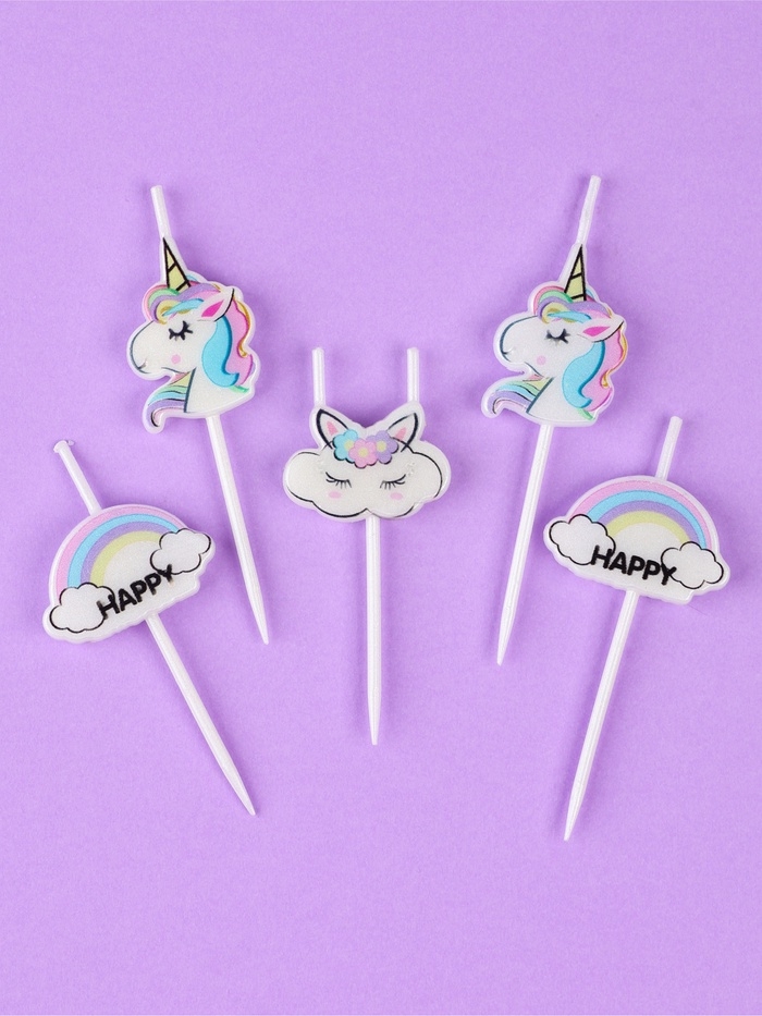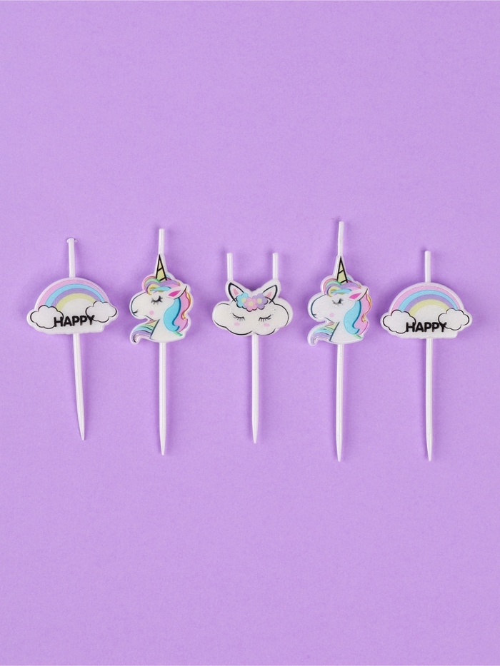 Набор свечей для торта, 5 шт "Единороги и облака", белые