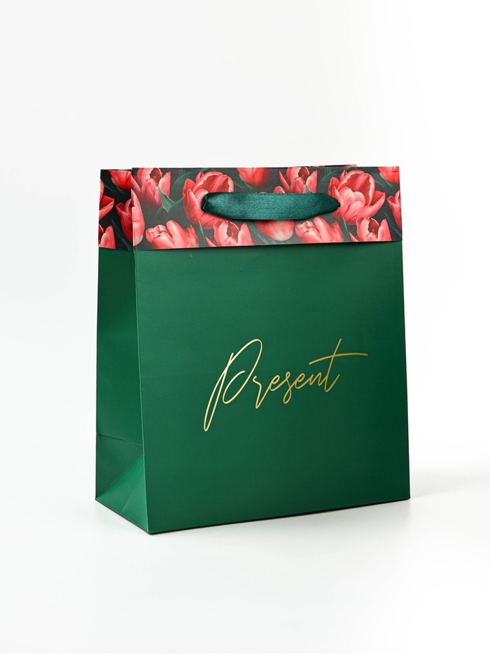 Пакет ламинированный двухсторонний «Тюльпаны», тиснение, ML 23 × 27 × 11,5 см
