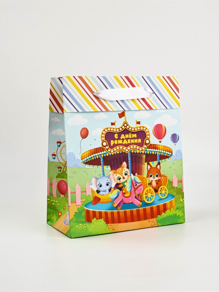 Пакет ламинированный двухсторонний «С Днём рождения», карусель, ML 23 × 27 × 11,5 см