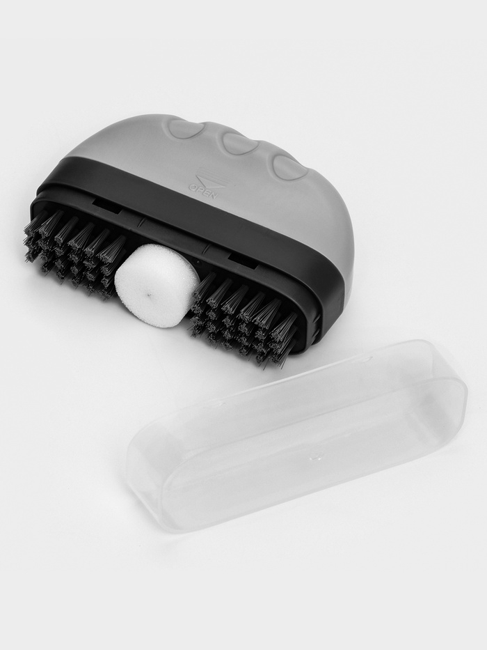 Щётка с моющим средством делает процесс чистки обуви простым и результативным. Встроенный механизм подачи средства минимизирует усилия, а щетина эффективно удаляет загрязнения. После очистки щёткой, пену легко можно убрать с помощью салфетки, оставляя обувь безупречно чистой. Этот компактный инструмент станет надёжным помощником для дома или путешествий.