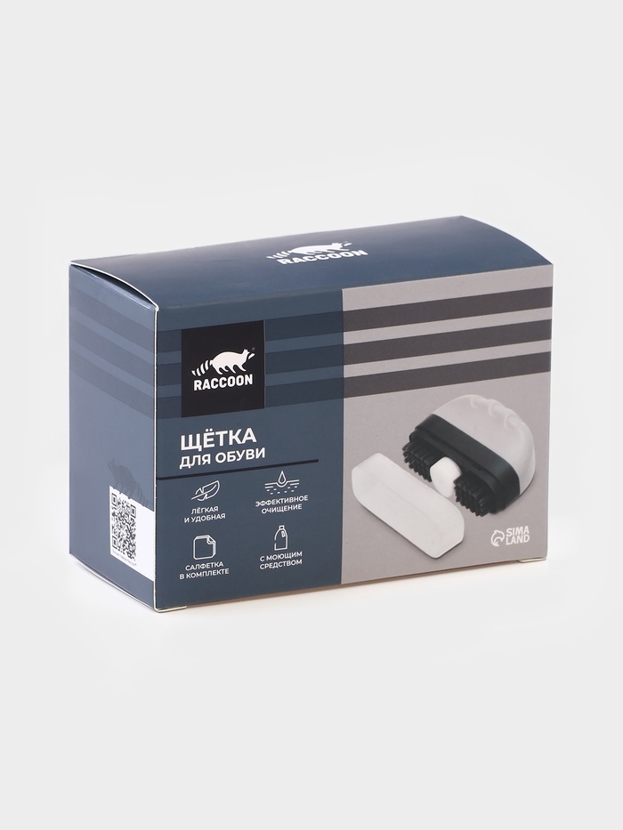 Щётка для обуви с моющим средством Raccoon, салфетка в комплекте, картонная коробка