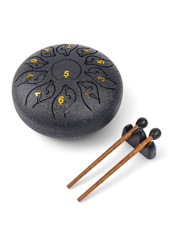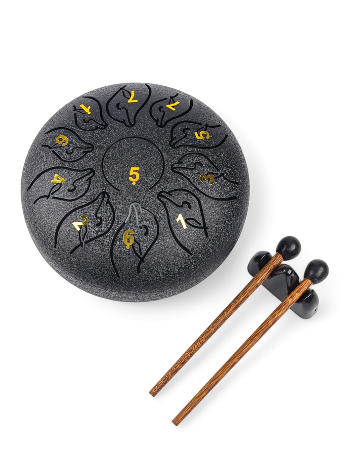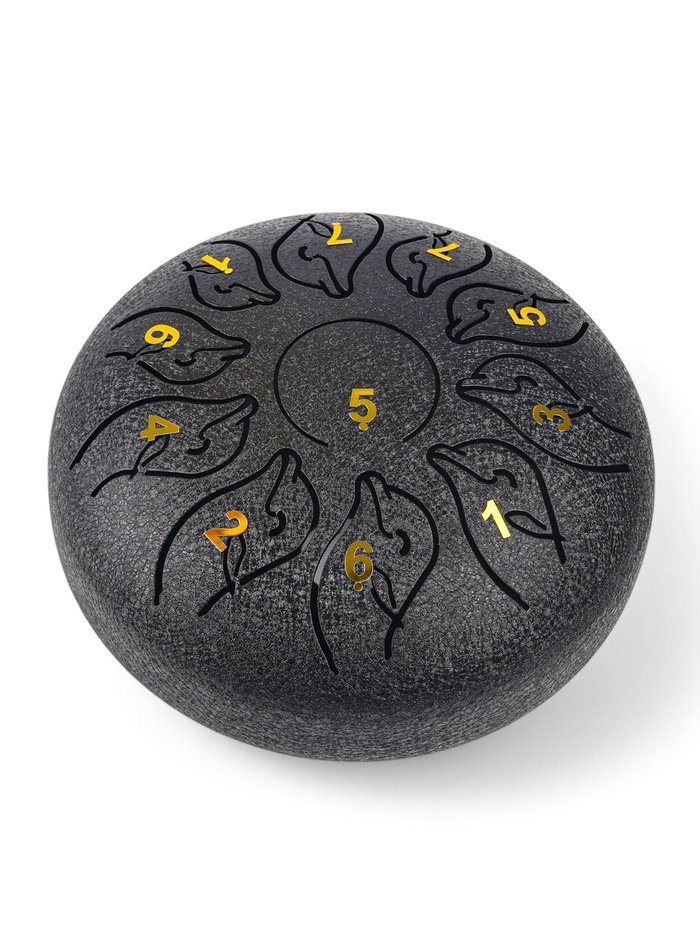 Глюкофон - музыкальный инструмент, дельфин черный, 11 лепестков, 18 х 18 х 11 см