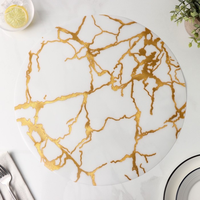 Салфетка сервировочная на стол «Мрамор», d=38 см, цвет белый