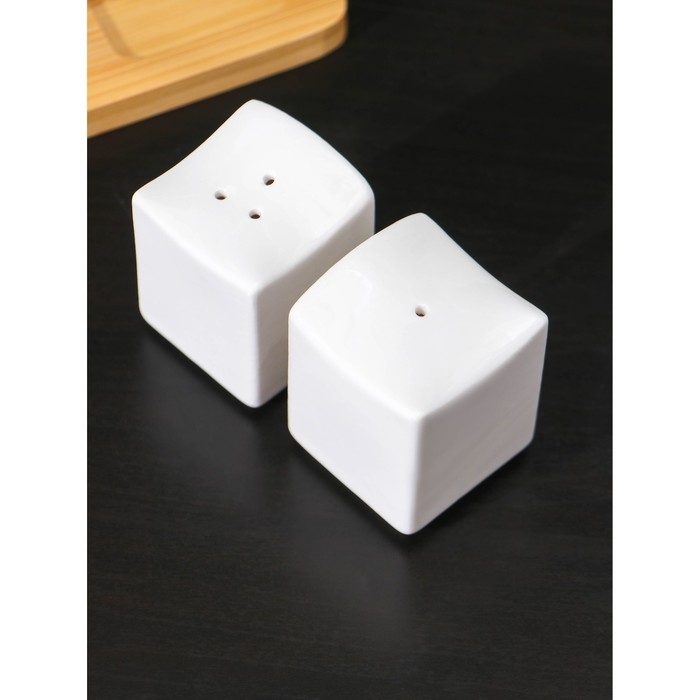 Набор фарфоровый для специй на бамбуковой подставке BellaTenero, 3 предмета: солонка 60 мл, перечница 50 мл, салфетница, цвет белый