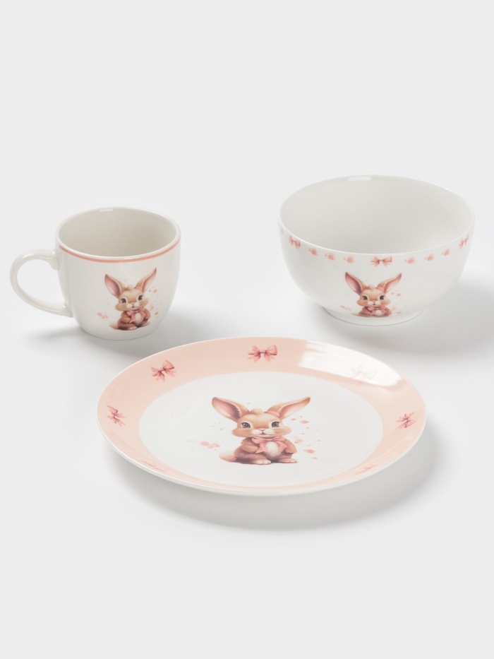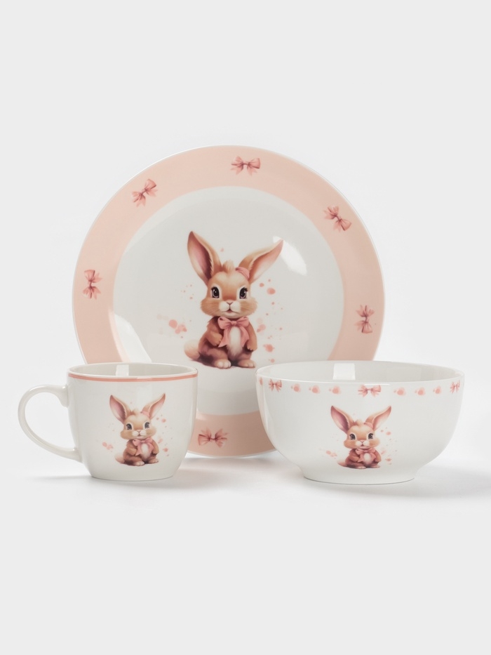 Набор детской посуды 3 предмета Доляна "Пушистый малыш" кружка, миска, тарелка