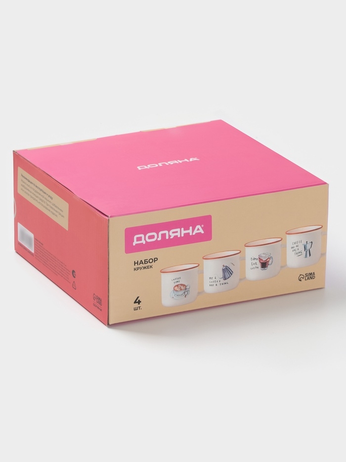 Набор кружек Доляна "Время кофе" 4 шт., цвет молочный