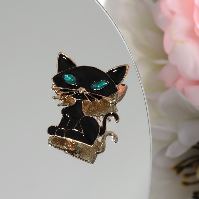 Брошь «Кошечка» хитрая, цвет черно-зеленый в золоте