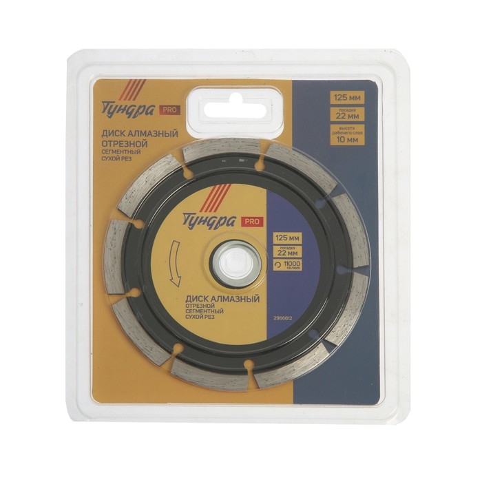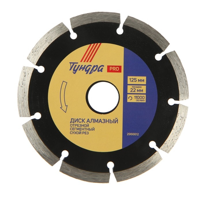 Диск алмазный отрезной ТУНДРА ПРОФИ, повышенный ресурс, сегментный, сухой рез, 125 х 22 мм