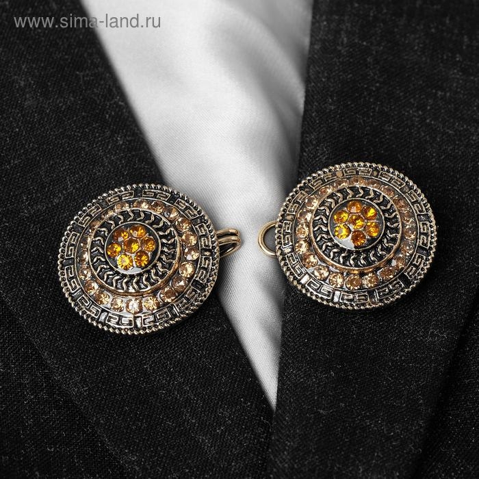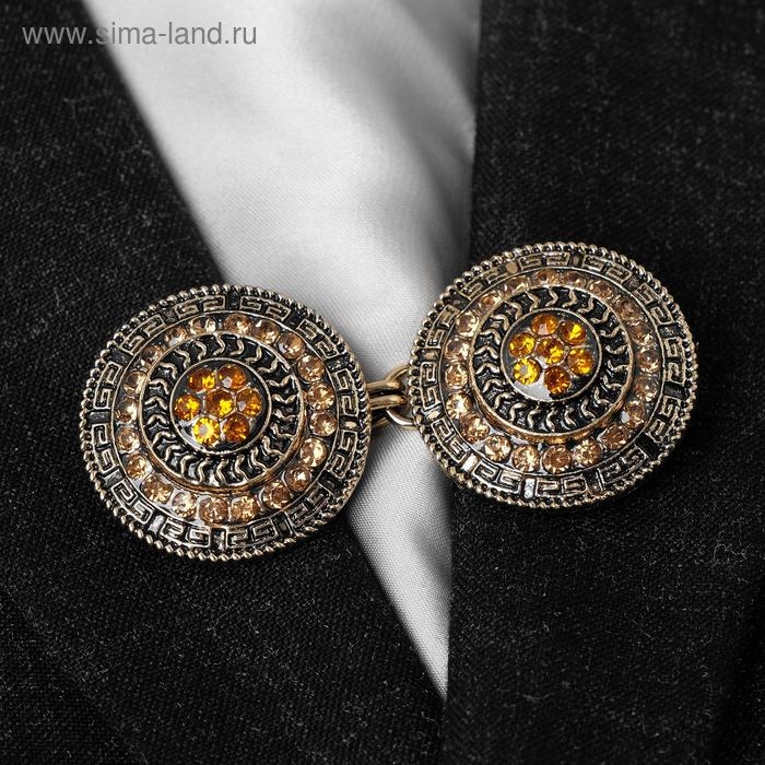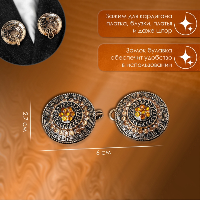 Зажим для кардигана «Круг» в орнаментах, цвет коричневый в чернёном золоте