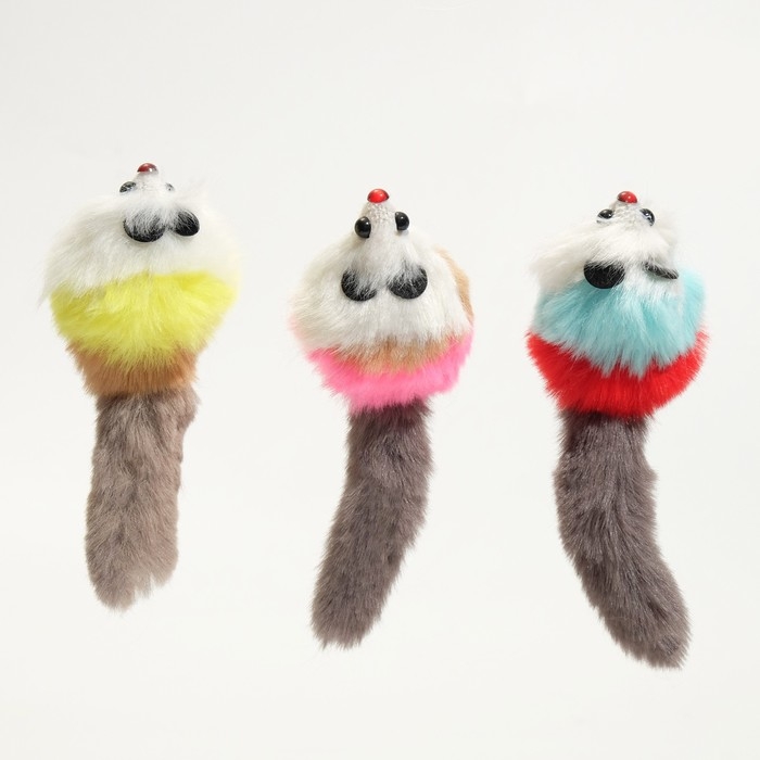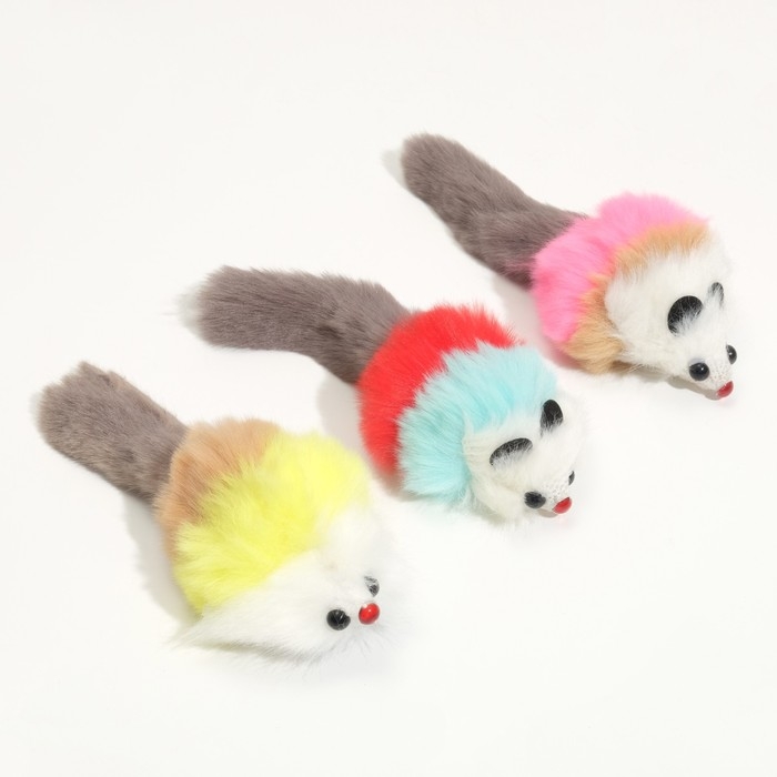 Мышь из искусственного меха, до 17 см с хвостом, микс цветов