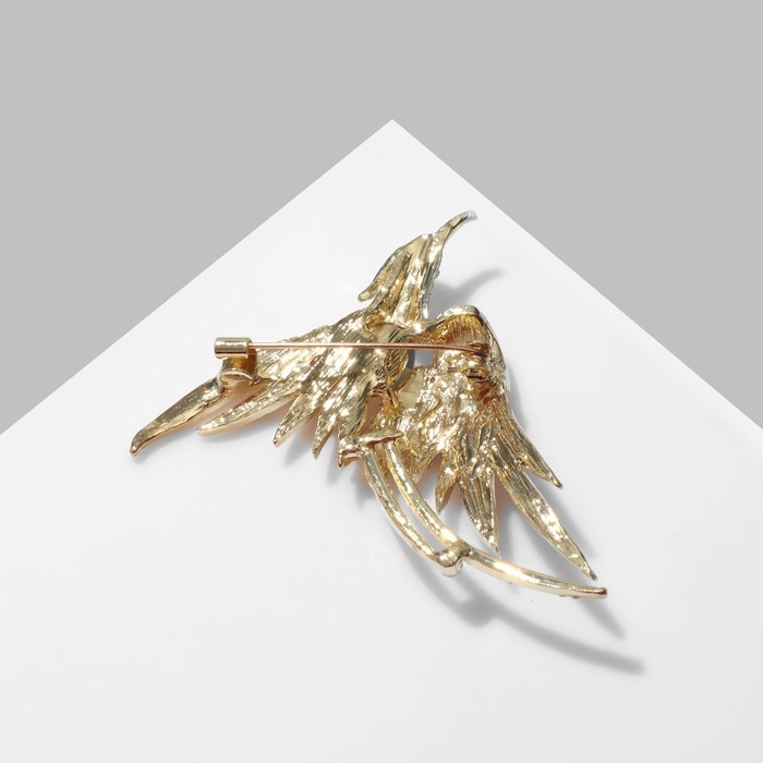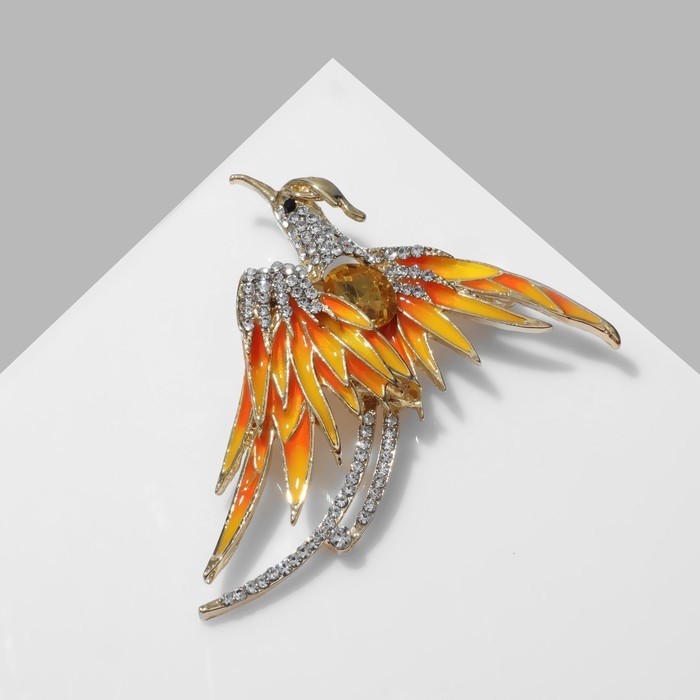 Брошь «Птица» феникс, цвет бело-жёлтый в золоте