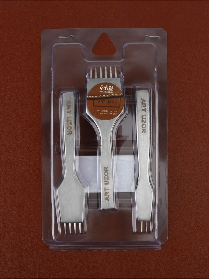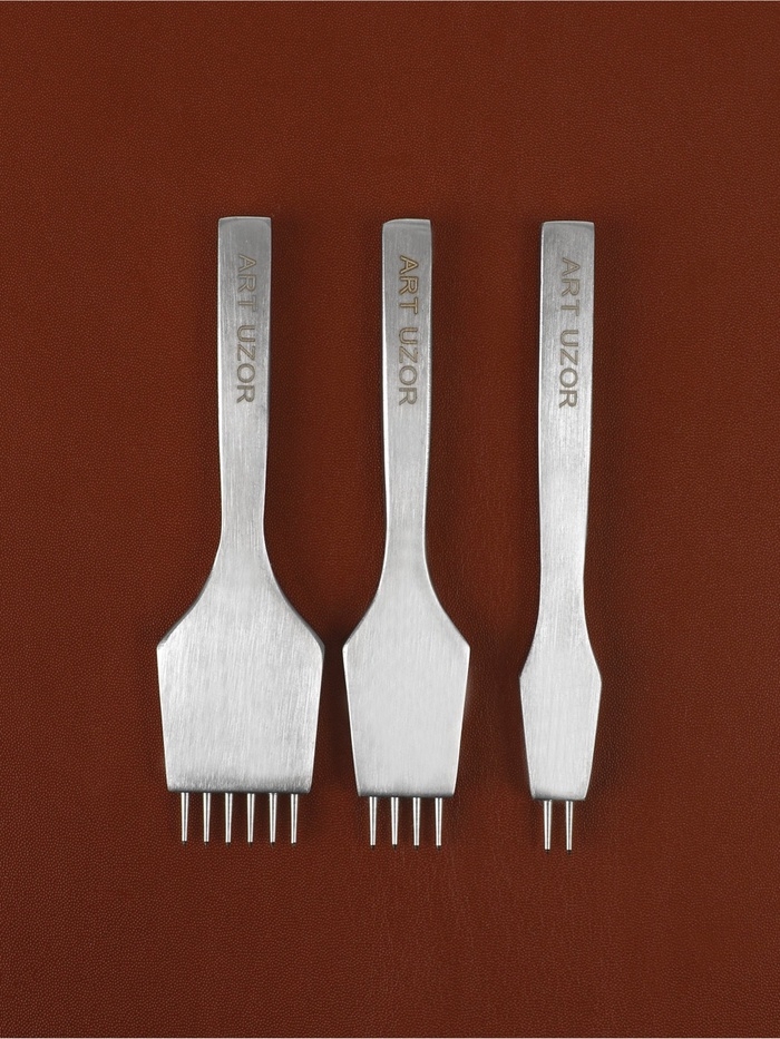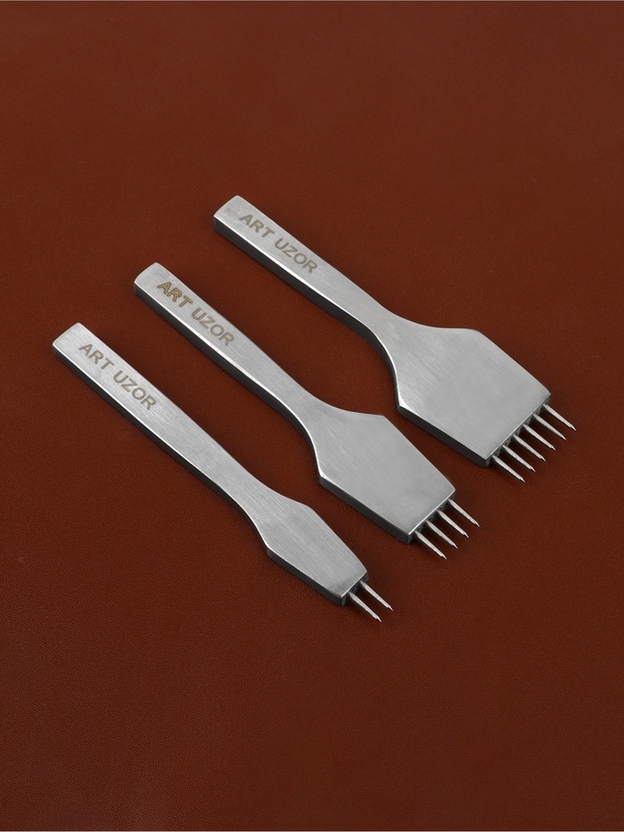 Набор строчных игольчатых пробойников для кожи (3шт цена за наб) шаг 4мм серебряный АУ