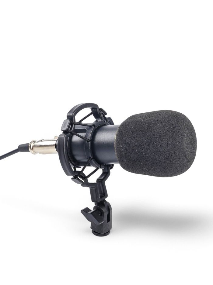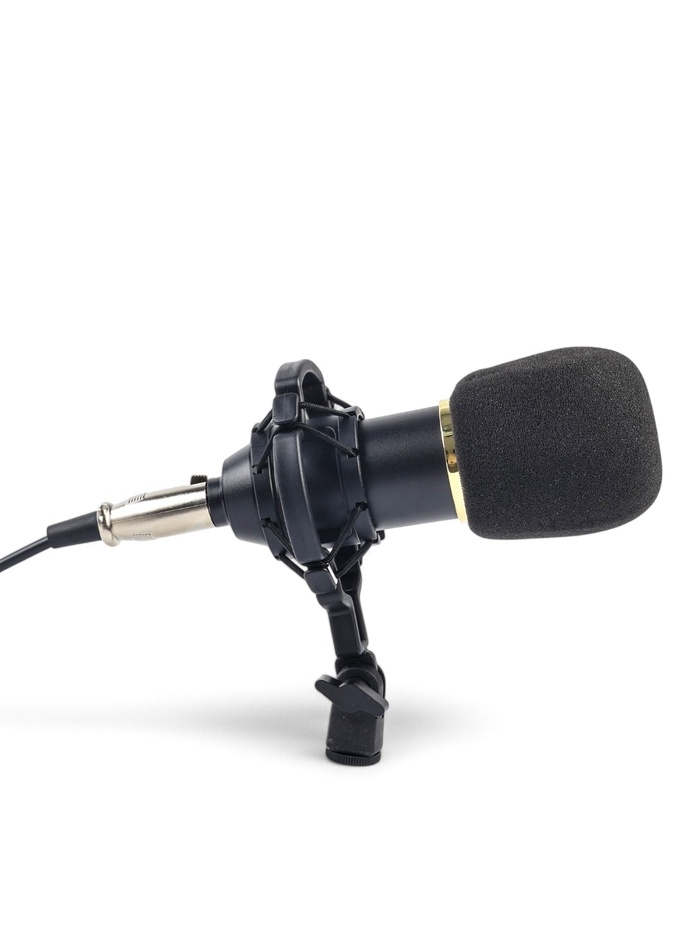 Микрофон конденсаторный Music Life золотой: кабель, ветрозащита, стойка