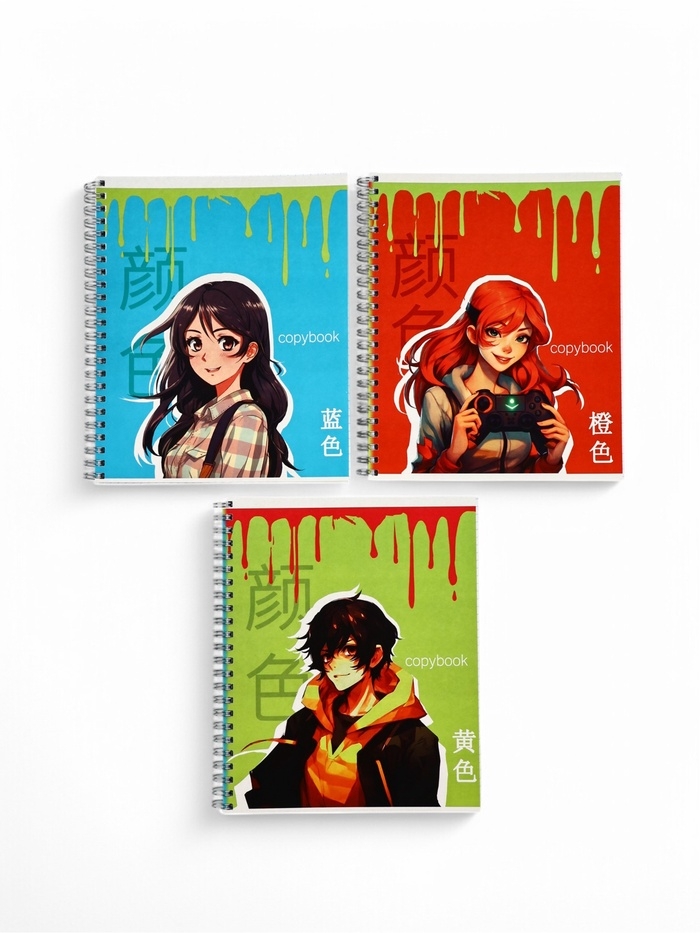 Тетрадь А5, 96 листов на спирали, 3 шт. «Яркие. Аниме» МИКС