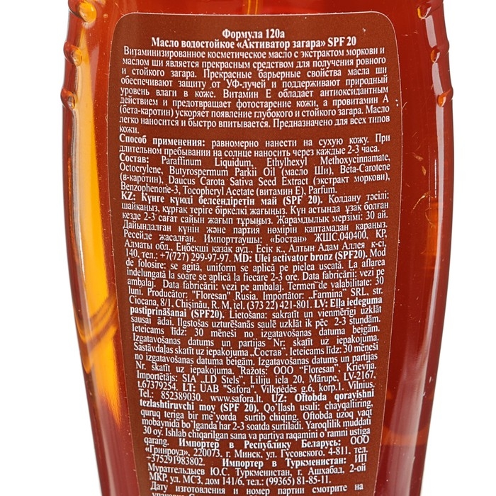 Масло водостойкое «Активатор загара» SPF 20, 150 мл