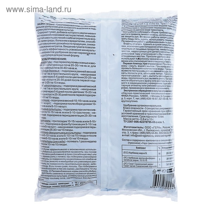Гуматизированный карбамид "ГЕРА", 0,8 кг