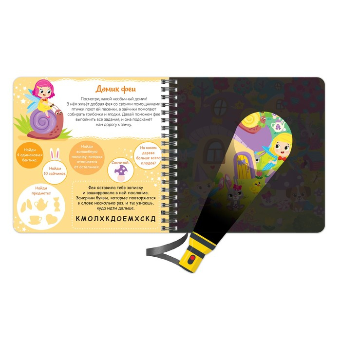 Секретная книга с волшебным фонариком привлекает внимание ребёнка своей необычной задумкой.